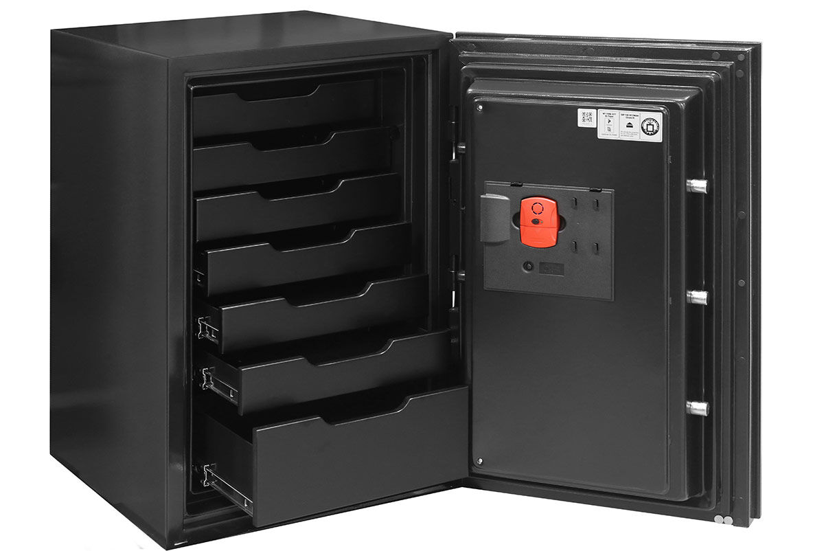 Огневзломостойкий сейф премиальной серии Palladium Gold модели 900 Smoked White Oak (тонированный шпон дерева) обладает не только безупречной внешностью, но и внушительным внутренним наполнением:
